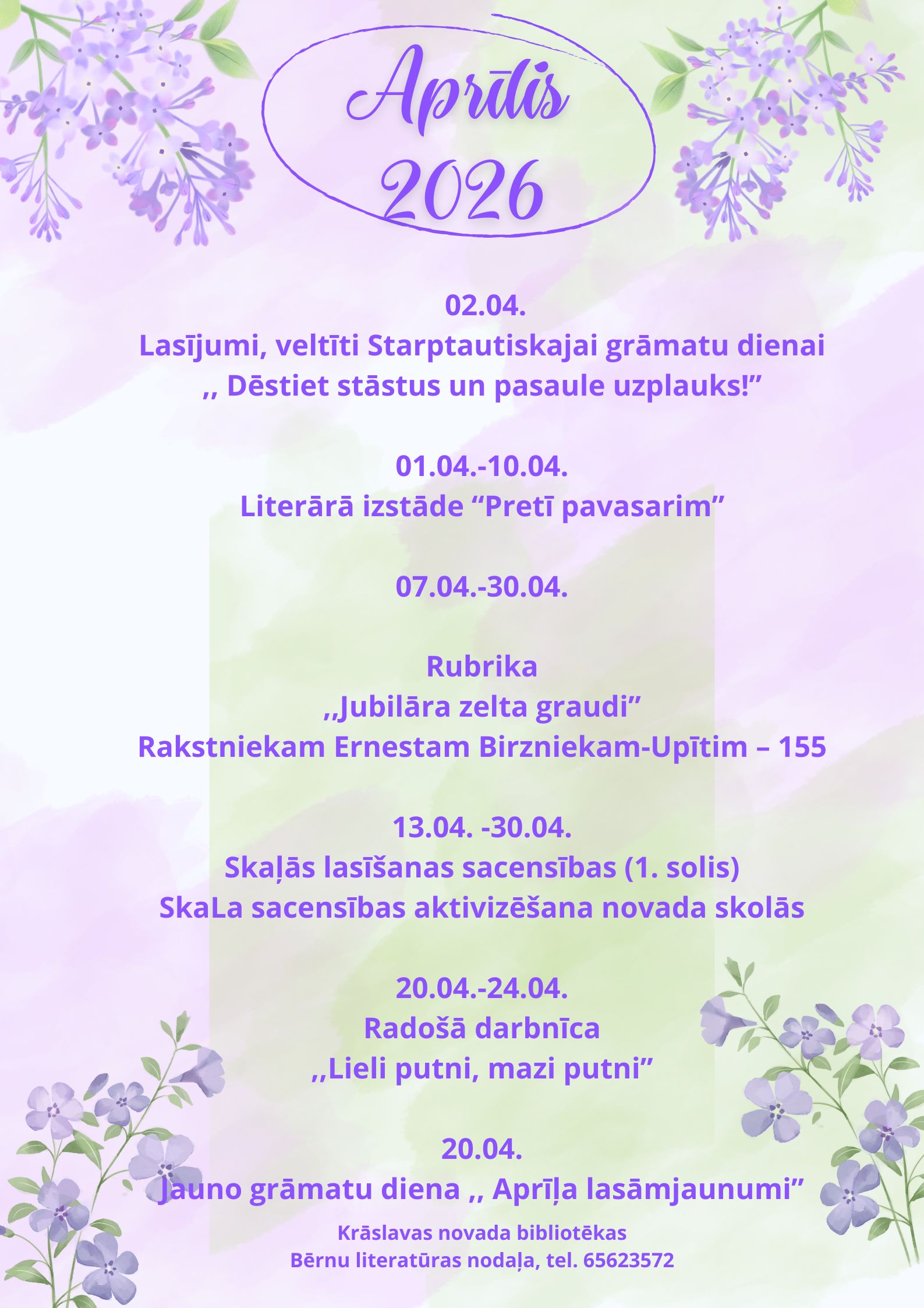 Aktivitātes bērniem un jauniešiem aprīlī