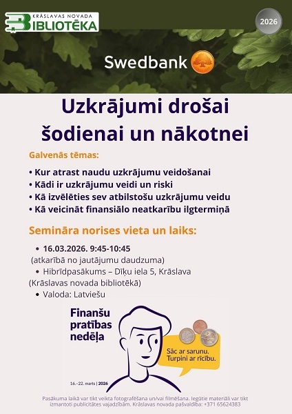 Finanšu pratības nedēļa 2026 Krāslavas novada bibliotēkā