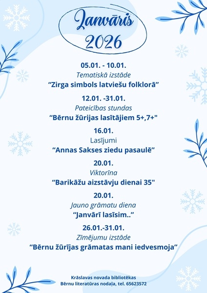 Aktivitātes bērniem un jauniešiem janvārī 05.01.2026