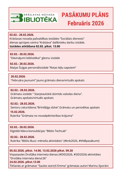 Pasākumu plāns par 2026. gada februāri 01.02.2026