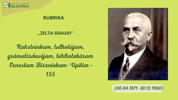 Mēneša jubilāra rubrika Zelta graudi: Ernestam Birzniekam-Upītim - 155! 10.04.2026