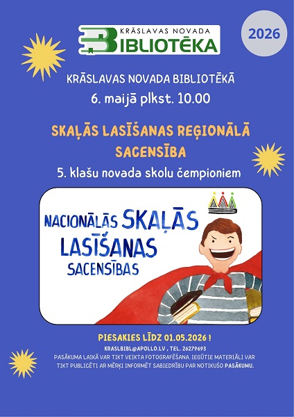 Dīķu iela 5, Krāslava, LV-5601, Latvija +371 6 5681100, +371 6 5624096, kraslbibl@apollo.lv