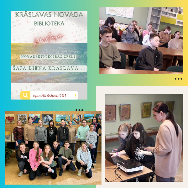 Novadpētniecības spēle Šajā dienā Krāslavā ... tiek piedāvāta tiešsaistē kā izglītojošs un reizē arī izklaidējošs resurss, kas palīdzēs veicināt bērnu, jauniešu un pieaugušo zinātkāri un interesi par Krāslavas pilsētas vēsturi. Vakardiena jau ir vēsture, bet rītdiena vēl ir noslēpums. Šodiena ir tā diena, kad mēs paši, krāslavieši, varam darīt darbus, lai citi tos ievērotu, par tiem atcerētos un runātu nākotnē.