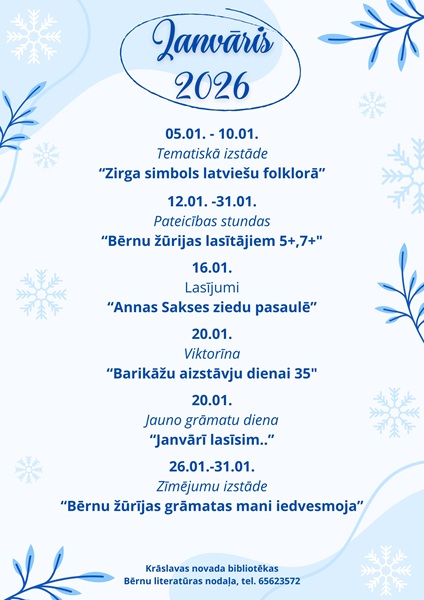 Klikšķinot uz grāmatu nosaukumiem, tiks atvērts Krāslavas novada bibliotēku kopkatalogs, grāmatas pieejamība, anotācija un ar bibliotekāra piešķirto lietotāja vārdu un paroli rezervē sev interesējošo grāmatu vai spēli, vai arī iestājies rindā uz izdevumu, izmantojot https://kraslava.biblioteka.lv/Alise/lv/home.aspx