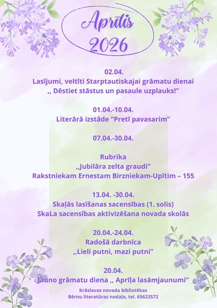 Aktivitātes bērniem un jauniešiem aprīlī 01.04.2026