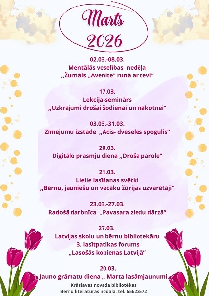 Aktivitātes bērniem un jauniešiem martā 02.03.2026